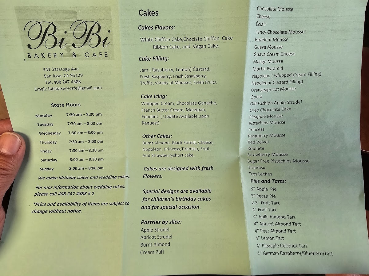 Welcome to BiBi Bakery & Cafe, a delightful gem nestled at 441 Saratoga Ave, San Jose, CA 95129, where the art of baking meets a cozy, inviting atmosphere. This charming bakery is more than just a place to grab a quick snack; it's a haven for food lovers seeking the irresistible allure of expertly crafted pastries, cakes, and coffee.